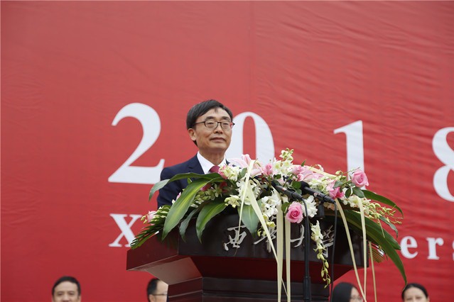 校长刘清友作了题为《求真求是明德修身追求卓越做新时代的西华人》的讲话。刘校长以“求是明德卓越”的西华校训为主题寄语新同学:一要求真求是,以奋斗之姿成为未来的人才。刘校长以中国工程院院士、我校79级校友王华明扎根科研的事迹为例,倡议大家以奋斗之姿,以求真求是的科学精神,做求真求是的西华人,赢得属于自己的机会;二要明德修身,以赤子之心拥抱未来的世界。刘校长从我校原建筑与土木工程学院93级校友、抗震救灾先进个人肖代全奉献和回馈社会的事迹出发,希望每一位西华学子可以守住初心,明德修身,做正直的人,做知感恩懂回报的人;三要追求卓越,以青春之我迎接未来的挑战,刘校长号召大家要学习为三峡大坝装上“中国心”的水轮机专家、我校流体机械专业79级校友石清华的奋斗精神,追求卓越,不断突破“小我”,在与国家共奋进的道路上,成就真正的“大我”。