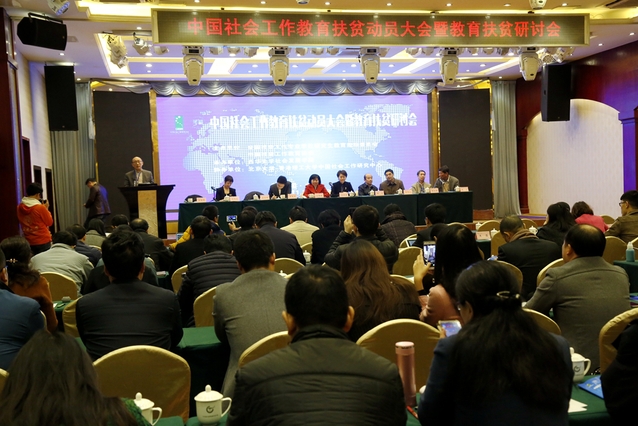 中国社会工作教育协会副会长兼秘书长马凤芝教授作为主持,组织开展中国社会工作教育对口扶贫计划工作布置暨现场动员,通报调查问卷结果,公布申请院校的名单,颁发对口扶贫任务书。