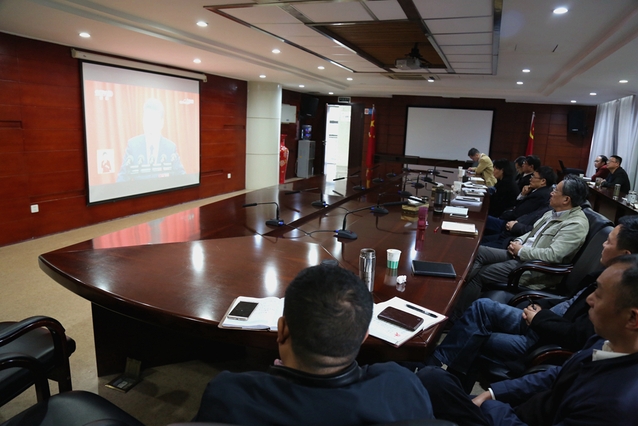 校党委中心组成员在行政楼212会议室集中收看