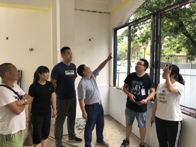 在幼儿园改造工程施工现场,校领导重点查看了幼儿园改扩建工程、设施设备进展和安全保障情况,要求后勤处和施工单位务必进一步强化安全意识、质量意识、工期意识、廉洁意识。同时校领导也指出后勤处要与施工单位多沟通、多协调,对施工场所多检查、多监督,确保施工安全和校园安全。
