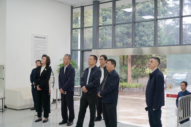 参观过程中,刘树根、李秋实向刘成鸣一行介绍了学校学科建设、科研创新、人才培养等情况。刘树根表示,学校始终坚守立德树人初心,坚持以高质量党建引领事业高质量发展,注重学科交叉渗透,坚持人才强校战略,加强人才队伍建设,抢抓战略机遇,不断改革创新,正努力实现学校内涵式高质量发展,瞄准申博条件和建设目标奋力前行。