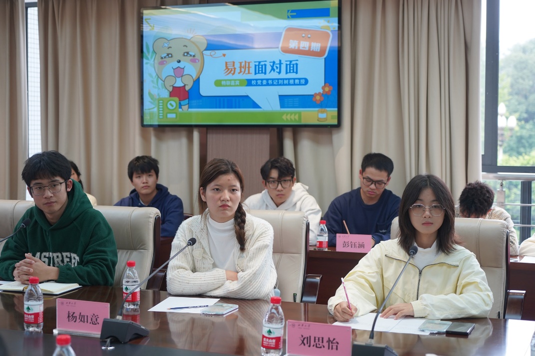 11月2日下午,第四期“易班面对面”主题活动在办公楼212会议室举行。校党委书记刘树根,副校长费凌、郎方年以及学校相关职能部门负责人与同学们围桌而坐,倾听学生的意见建议,现场为同学们答疑解惑。党委宣传部、学生工作部、保卫处、校团委、教务处、研究生院、招生与就业处、后勤服务总公司等部门负责人参加了本次面对面交流活动。