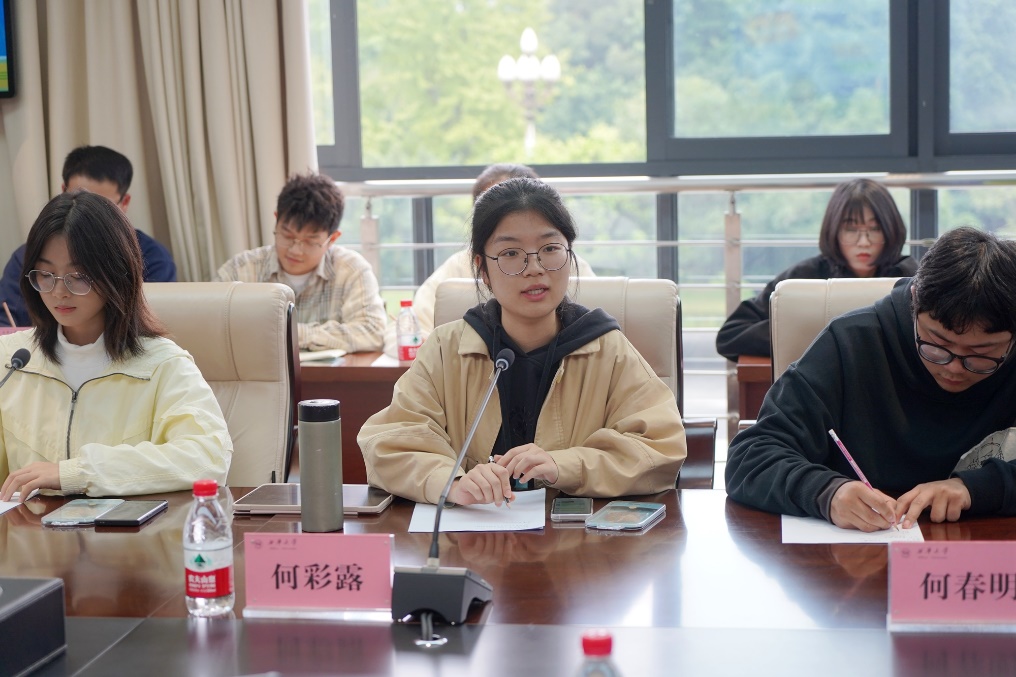关于学习,刘树根书记也分享了自己的看法:“学习不应该浮躁功利,大学最重要的是要将每门课学好,同学们要立足当下,踏实学好专业知识是考研、就业和进行跨学科学习的基础。”他告诉同学们,努力提升自我,追求真理,精进学业,才是大学生应有的学习目标。考研一词作为谈话关键词也多次出现,"考研能够扩大自己未来的选择面,我们鼓励学生向上走,但考研最终取决于个人。希望同学们找到自己真正感兴趣的方向去钻研,不盲目从众,在自己合适的位置上发光发热。"刘树根书记殷切期望到。