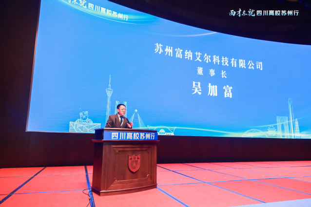11月2日上午,中共四川省委教育工委委员、四川省教育厅党组成员、副厅长陈朝先在启动仪式中全面介绍了近年来四川高等教育的发展成就,要求四川高校代表化身“就业推荐官”,为毕业生当好“牵线红娘”,抢抓秋招关键期,积极邀请苏州企业到校招聘,与苏州企业积极搭建资源共享、机制共创、人才共用的合作平台,建立交流互访机制,开展教学科研全方位合作。我校97级机械电子工程专业校友、苏州富纳艾尔科技有限公司董事长吴加富作为在苏州工作的四川高校毕业生和企业代表作交流发言。吴加富分享了个人求学、创业经历,表示四川拥有大量优质的高等教育资源、高素质人才,苏州作为高新企业与高技能人才的聚集地,长期以来非常重视人才的引进、培养与留用,双方的契合度非常高,并诚挚邀请在川高校推荐四川学子来苏奋斗,共同推进毕业生更加充分和更高质量就业,来苏共创辉煌。校企合作签约仪式上,学校党委副书记张力代表学校与苏州华兴源创科技股份有限公司上台签约,达成校企合作意向。