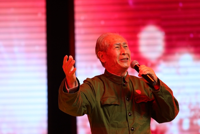 今夜星光灿烂,今夜新时代青年与铁血英魂同在。八十二岁高龄的退休教师陈士力老先生,用激昂振奋的朗诵追忆那激情燃烧的岁月中一个老兵的生命凯歌,全场观众无不为那峥嵘岁月肃然起敬、热泪盈眶。军民从来一家亲,机关分工会带来的舞台剧《十送红军》展现出难舍的军民情义和质朴情怀。歌声飘过新中国七十年历程,从《映山红》到《强国一代有我在》,几代国人的心声随台下挥舞的红旗回荡全场。最后,晚会在一首耳熟能详的《我和我的祖国》歌声中圆满落幕,满座红旗竞相飞扬,每个人对祖国的深深爱恋都倾注在歌声之中。