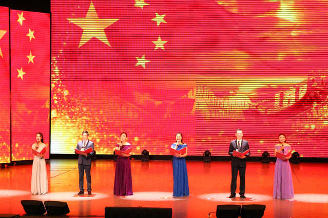 为庆祝中华人民共和国七十华诞,生动描绘新中国70年来的光辉历程和伟大成就、展现教职工的精神风貌,9月29日晚,我校在艺术大楼大剧场举行了“我和我的祖国”庆祝中华人民共和国成立70周年教职工文艺汇演,师生共同见证祖国的风云变幻,一同分享祖国的春华秋实。本次演出由校工会、音乐与舞蹈学院承办,全体校领导、全体中层干部、支部书记代表、教师代表和学生代表观看了表演。
