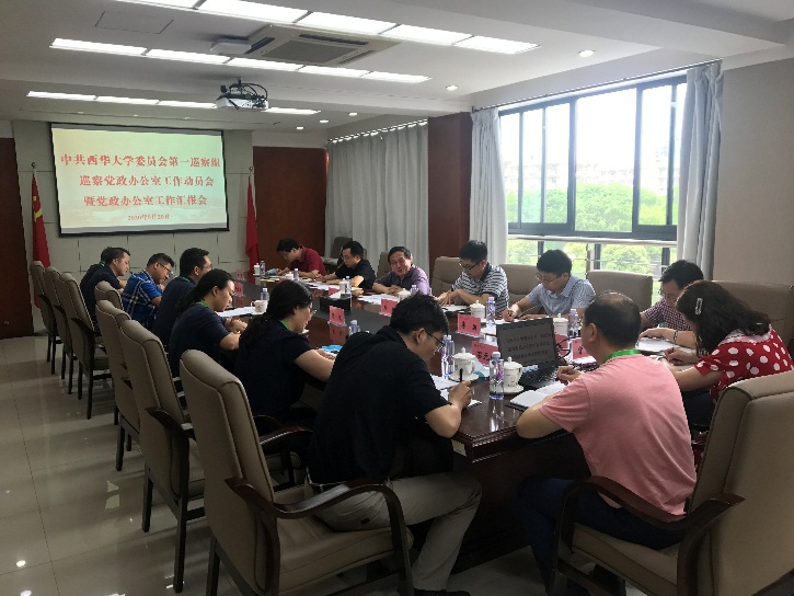 根据学校党委的统一安排,2020年5月20日上午11:00,校党委第一巡察组进驻党政办公室并在办公楼412会议室召开巡察工作动员会。从即日起,第一巡察组将对党政办公室进行为期10天的巡察。第一巡察组组长向勇,副组长周川、徐攀及巡察组成员,党政办全体同志参加了会议。党政办公室主任黄进主持会议并作表态发言。
