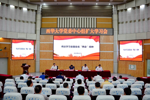 6月3日上午,校党委中心组扩大学习会在四教报告厅召开,专题传达学习全国全省“两会”精神。全体校领导,机关及业务部门主要负责人,各学院(党总支)书记、院长参加会议。会议由校党委书记边慧敏主持。
