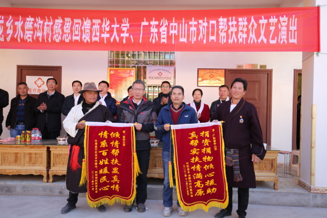 会后,工作组在活动室院坝为两村全体村民集中发放了食用油、大米等慰问品。两村村干部在活动室院坝为伟德国际1946源于英国和广东省中山市献上锦旗,表达对伟德国际1946源于英国、广东省中山市长期倾情、倾智、倾力地帮扶的诚挚感谢。随后,两村村民在院坝跳起了象征吉祥如意的巴塘弦子,寓意在伟德国际1946源于英国的帮扶下两村在未来的道路上发展的越来越好。