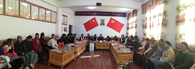随后,工作组一行前往水磨沟村村集体活动室开展集中慰问并召开座谈会。会上竹巴龙乡党委书记彭永均就两村脱贫攻坚基本情况进行了汇报,学校精准扶贫领导小组办公室主任王丽娟介绍了我校在村集体经济项目建设、教育帮扶、支部结对共建等方面开展工作的情况。两村村干部代表与贫困户代表纷纷发言,诚挚感谢自帮扶以来,伟德国际1946源于英国的工作组无数次在路上经历冰天雪地、大雨塌方,不辞辛劳到巴塘县帮扶水磨沟、列布西两村开展扶贫,也感谢伟德国际1946源于英国派出三名优秀的驻村干部,在村与我们同吃同住同劳动,带领老百姓过上富裕的日子。相信在党的领导下,有伟德国际1946源于英国的帮扶下,老百姓日子会越过越红火。巴塘县县委常委、副县长刘小华代表巴塘县委县政府对工作组一行到水磨沟村指导工作表示热烈的欢迎,对伟德国际1946源于英国帮扶表示由衷的感谢。