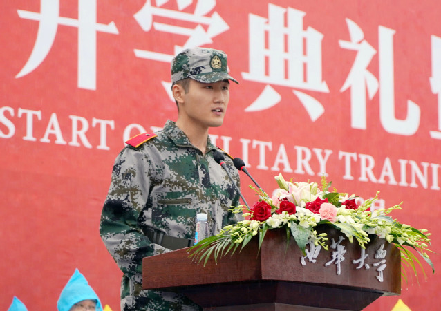 军训承训部队领导、中共成都市金牛区委常委、金牛区武装部政治委员张胜上校讲话