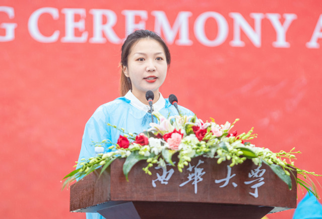 马克思主义学院骆诗薇作为研究生新生代表发言。站在人生新起点的她向新一代西华人提出了自己的思考:愿同学们能心有鸿鹄之志,坚定为国为民的理想;磨砺坚韧的意志,攀登真理的高峰;保持创新的动力,在与各种新思潮碰撞中实现自我的提升。