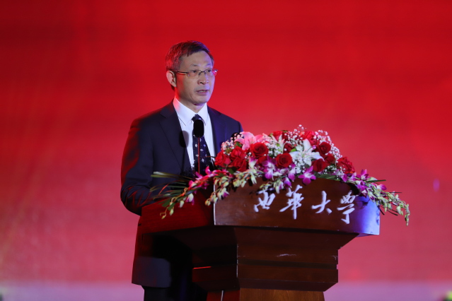 校党委书记余孝其代表学校向为学校发展付出心血的老领导、老同志和辛勤耕耘的全体教职员工致以崇高的敬意,向长期关心支持学校发展的社会各界朋友致以诚挚的感谢,向海内外校友致以温馨的问候和美好的祝愿,向2021年新进教师和新同学表示热烈的欢迎。余孝其表示,恰逢百年,意义非凡,今晚的秋韵是“礼赞祖国、颂歌献党”的真情告白。不忘初心,立德树人。今晚的秋韵是尊师重教的文化盛典,情系西华,共同发展。学校“十四五”规划发展蓝图已全面铺开,让我们以只争朝夕的精神乘势而上,勇攀新高,向着特色鲜明、国内知名的高水平综合性大学奋勇前进。