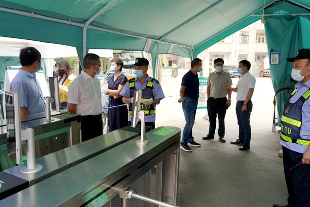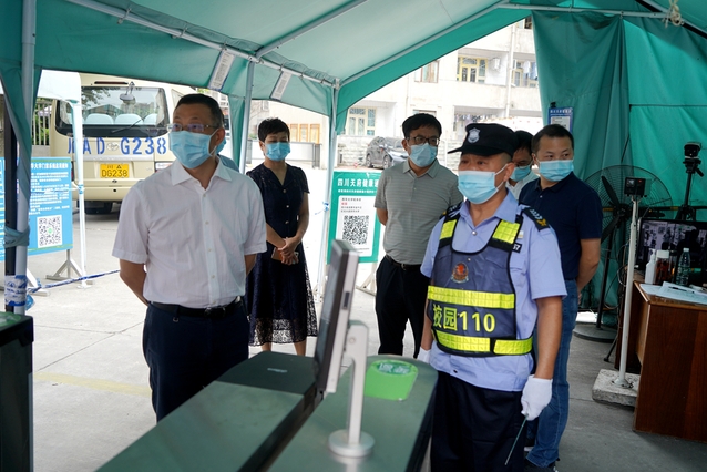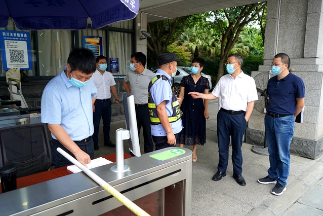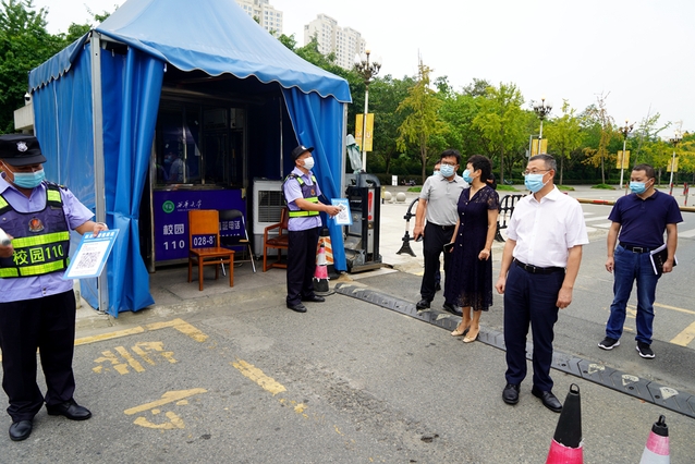 面对成都市疫情防控形势严峻复杂、学校实行居家办公和线上教学的情况,9月1日上午,校党委书记、疫情防控工作领导小组组长余孝其带队深入南大门、西大门、西侧门、西华苑北苑东门等值班值守岗、校园管控、一食堂核酸检测点等地,实地检查督导疫情防控措施落实情况和生活条件保障、情绪稳控等情况,慰问值守校园疫情防控工作一线的防疫工作人员,并就抓实抓细防控措施和关心关爱师生员工提出了工作要求。校党委副书记、校纪委书记朱燕萍,校党委副书记张力,副校长费凌、郑鈜,学校疫情防控工作领导小组办公室相关人员陪同检查。