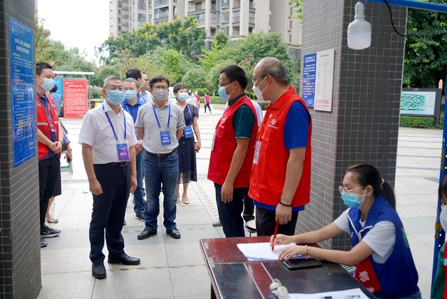 在西华苑北苑9栋楼下的核酸检测点,余孝其与前来参加核酸检测的离退休老同志亲切交流,感谢离退休老同志对学校疫情防控工作的支持、配合与理解,仔细询问他们的生活需求保障,并提醒相关工作部门要做实做细各项服务保障工作,优化服务流程,减少教职员工和上网课中小学生的排队等待时间,落实好关心关爱措施,为参检师生和一线核酸检测医护人员创造更加良好的环境。